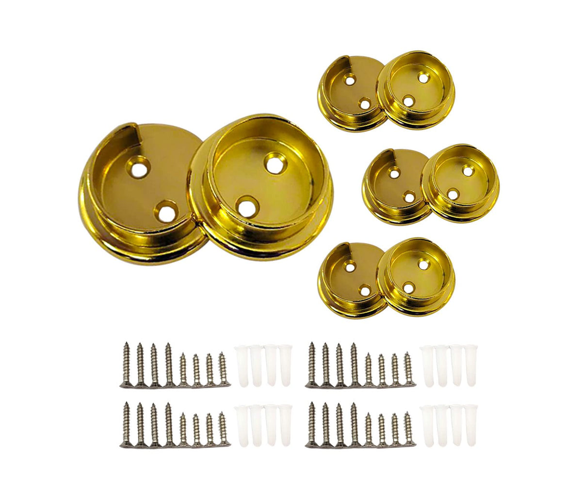 Qcaa Heavy Duty Solid Metal Closet Rod Socket Set, 1-3/8'', Polish Brass, 4 Pair, Made In Taiwan