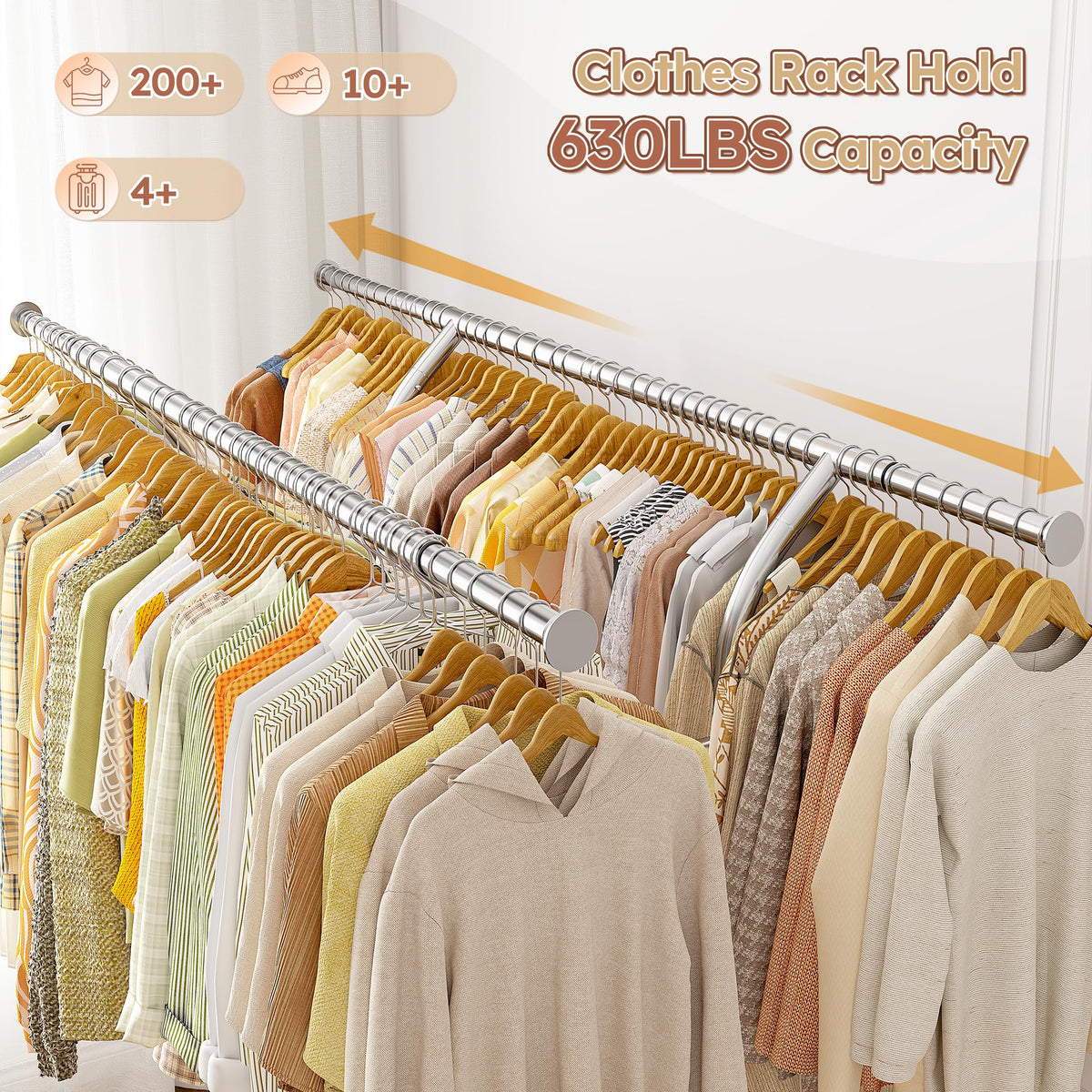Raybee Clothes Rack Heavy Duty Clothing Rack With Wheels Load 630Lbs Clothing Racks For Hanging Clothes Rolling Clothes Rack Adj