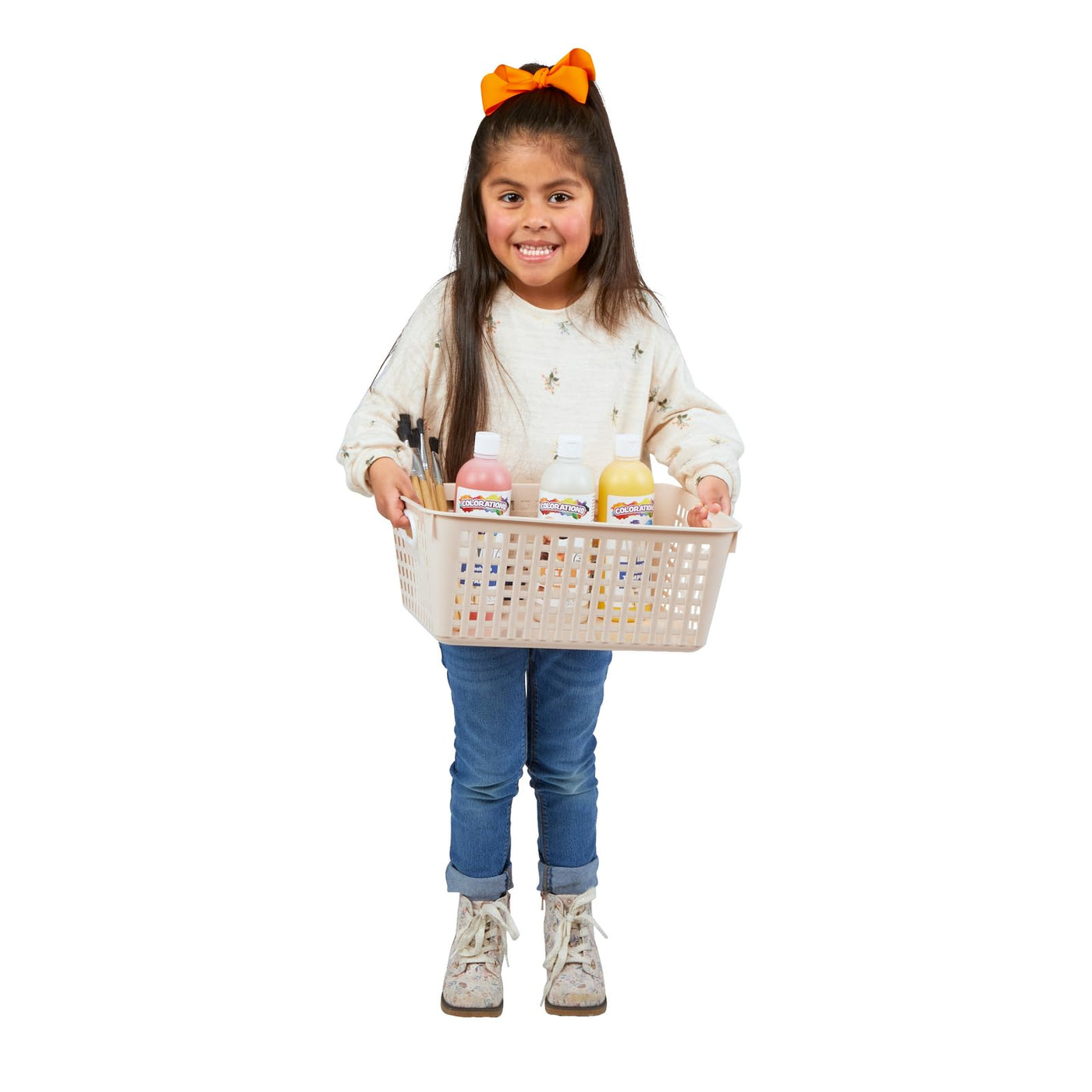 Q: Are these plastic storage baskets suitable for classroom use?A: Yes, these durable plastic storage baskets are designed to withstand daily use in classrooms, making them ideal for organizing books, papers, and other classroom essentials.