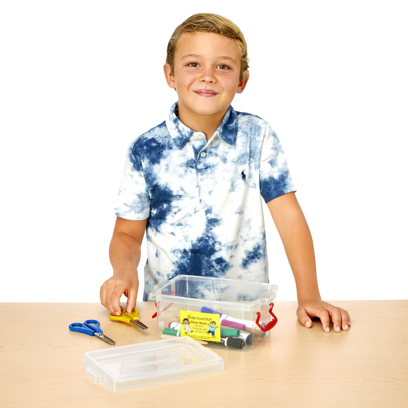Really Good Stuff Small Clear Plastic Stackable Storage Tubs With Locking Lid - Red Handles Lock Lid In Place - Hold Supplies, M