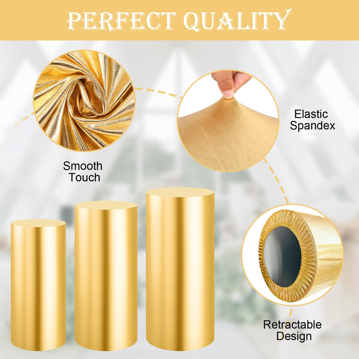Saitimade Set Of 3 - Gold Cylinder Pedestal Stand Covers, Flexible Cylinder Stand Covers For Party, Wedding Or Birthday Event De