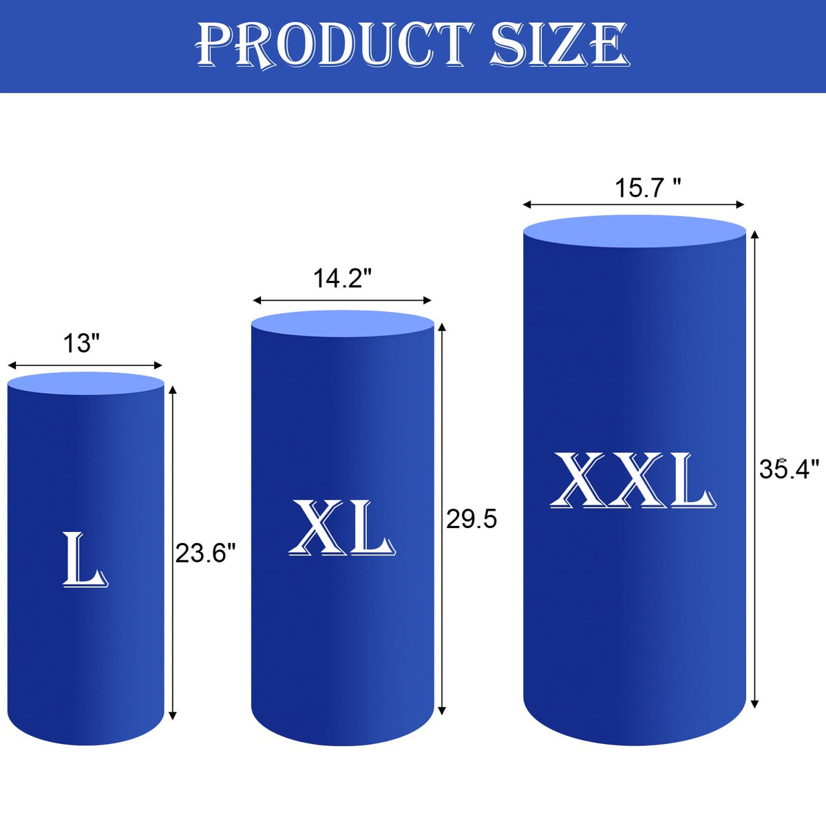 Saitimade Set Of 3 - Royal Blue Cylinder Pedestal Stand Covers, Flexible Cylinder Stand Covers For Party, Wedding Or Birthday Ev