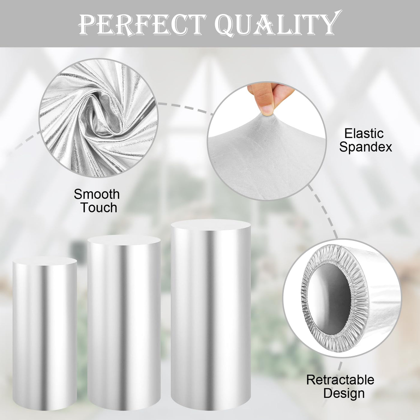 Saitimade Set Of 5 - Silver Cylinder Pedestal Stand Covers, Flexible Cylinder Stand Covers For Party, Wedding Or Birthday Event
