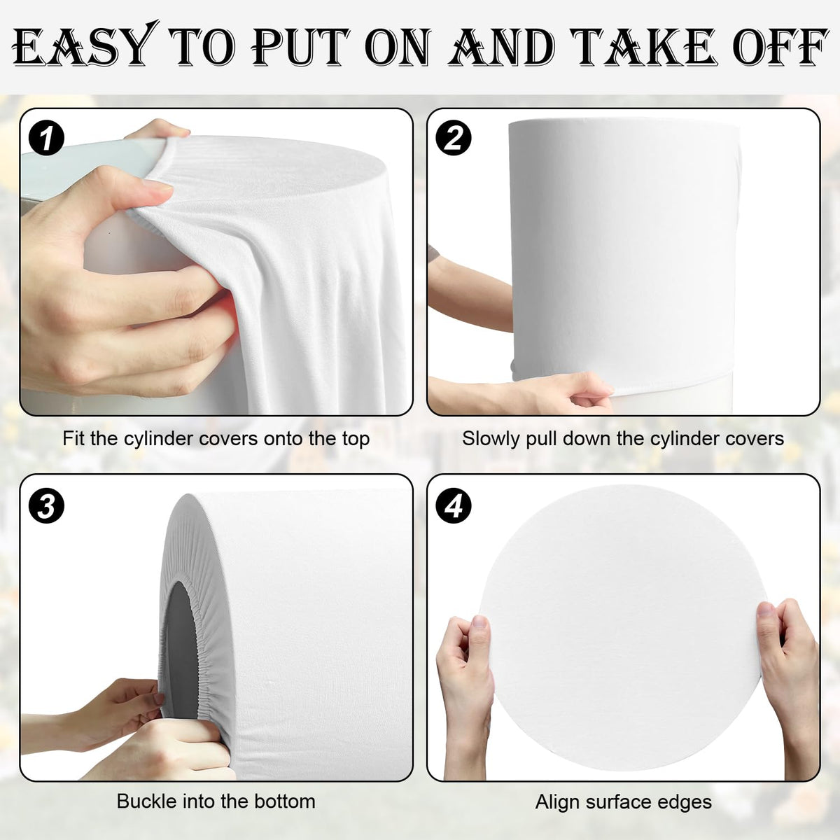 Saitimade Set Of 5 - White Cylinder Pedestal Stand Covers, Flexible Cylinder Stand Covers For Party, Wedding Or Birthday Event D