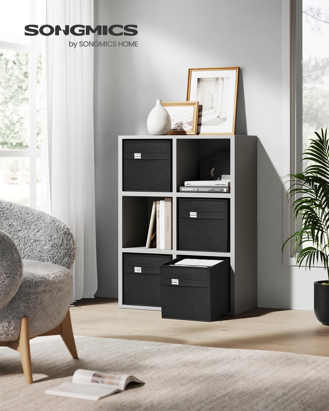 Q: What are the dimensions of the SONGMICS Storage Cubes?A: The SONGMICS Storage Cubes measure 11.8 x 11.8 x 11.8 inches, making them a perfect fit for standard cube shelves and closets.