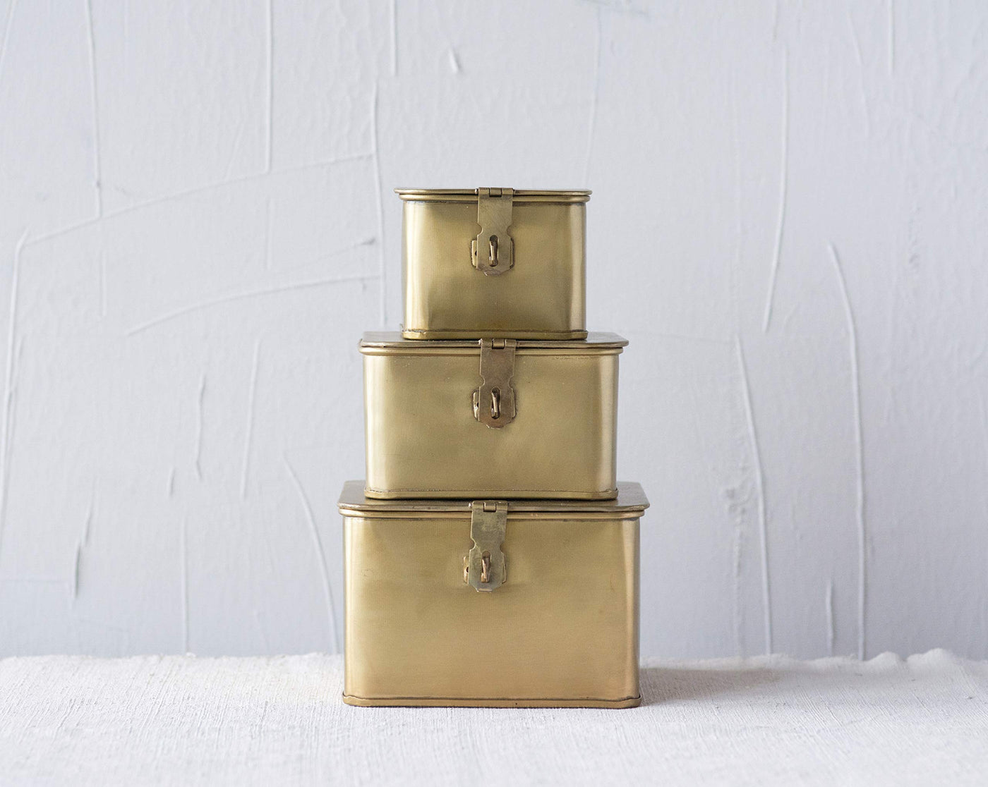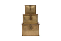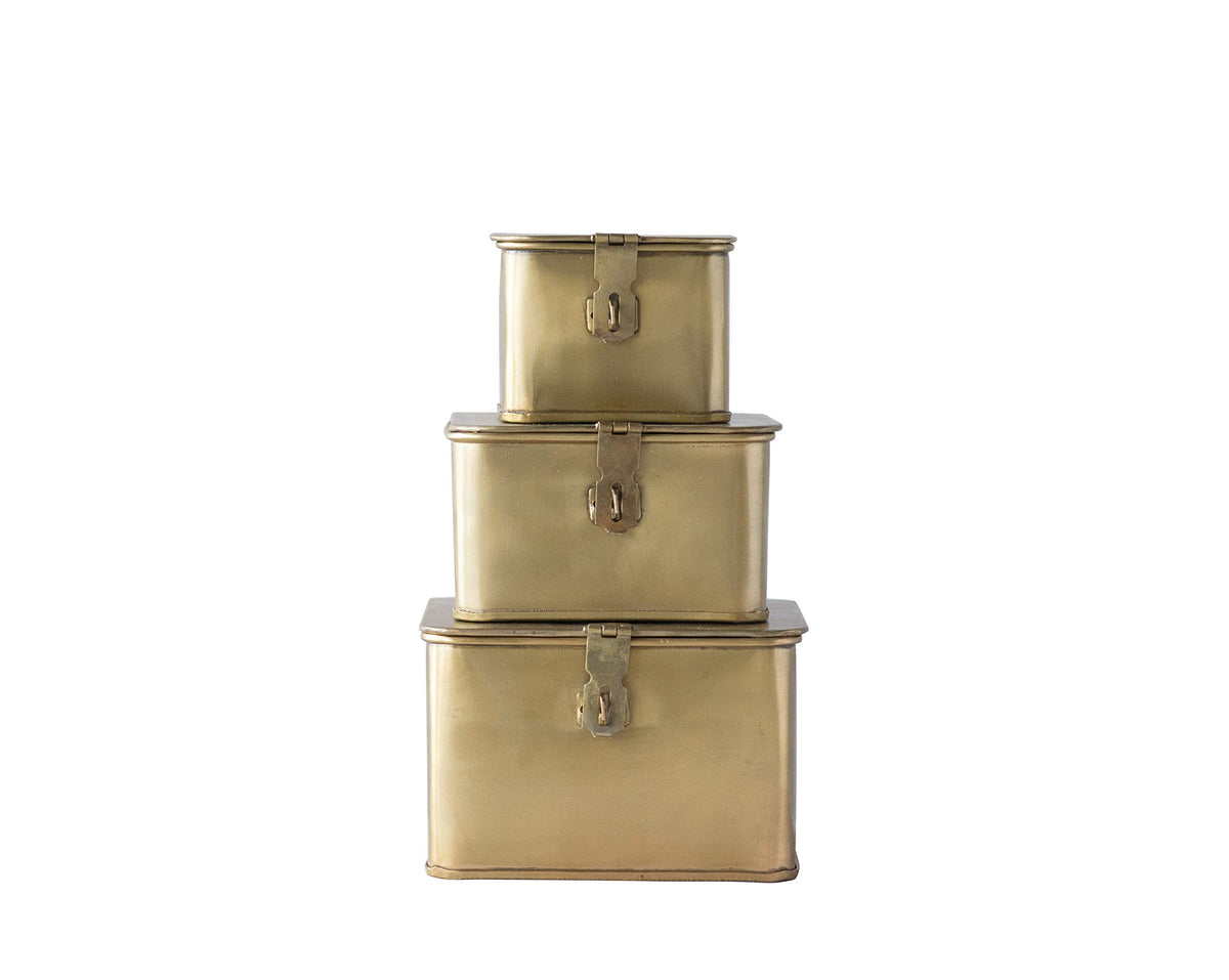 Bring A Sense Of Style To Your Home With This Set Of Three Metal Boxes With A Gold Finish. Perfect For Any Room, These Boxes Can Be Stacked Or Placed In Separate Spaces. These Versatile Boxes Will Hold An Array Of Odds And Ends. Designed With A Hinged Lid And A Latch With The Ability To Be Locked (Lock Not Included) These Boxes Can Hold Your Valuable Small Keepsakes.