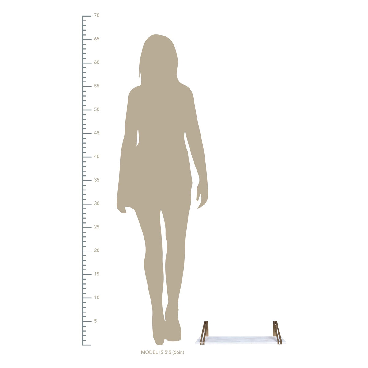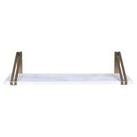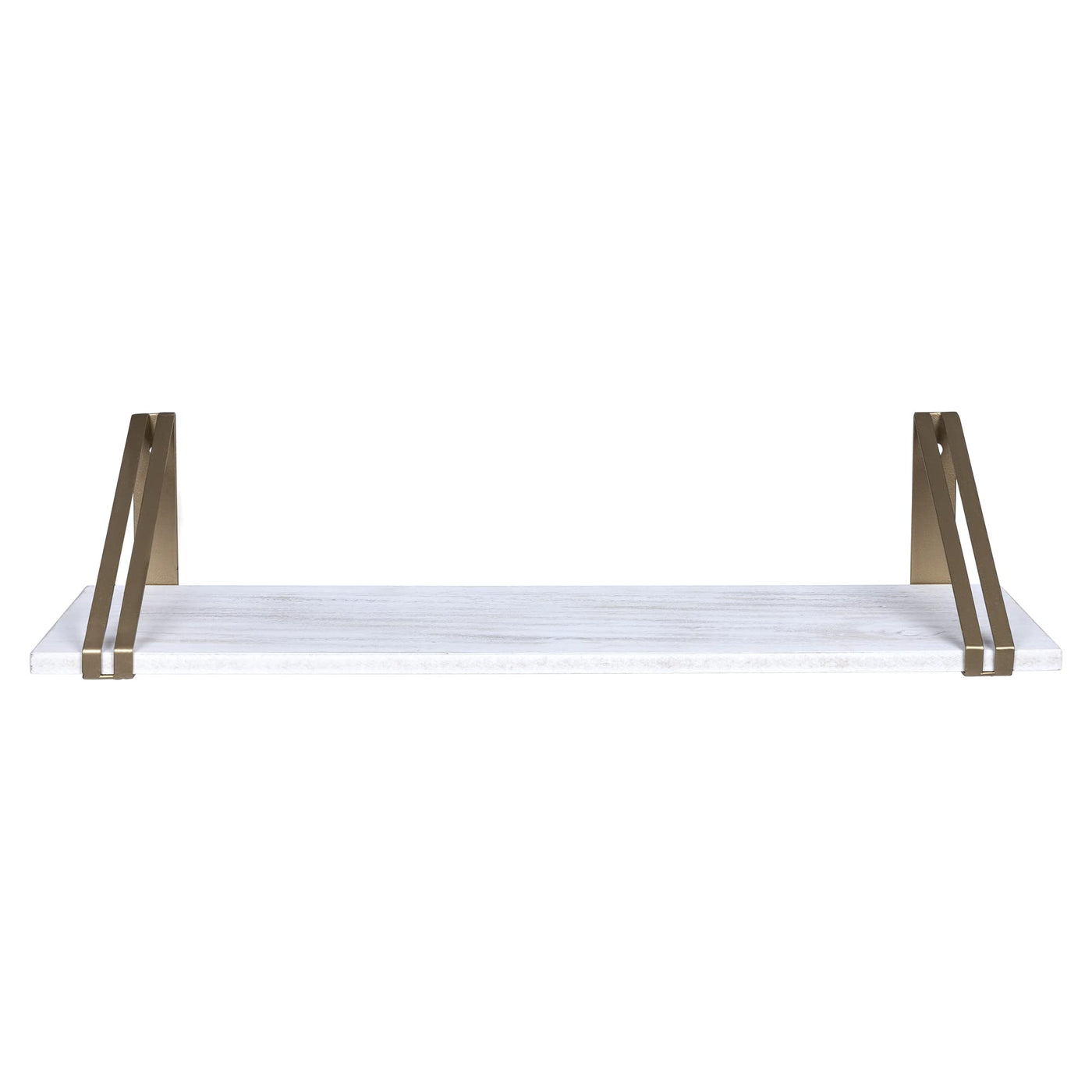 This wall shelf flaunts double linear aesthetics that will look great in your modern home. Its wooden base shows off the natural knot and grain details, brought to life by a light white painted finish. The metal brackets gleam with a matte gold finish.