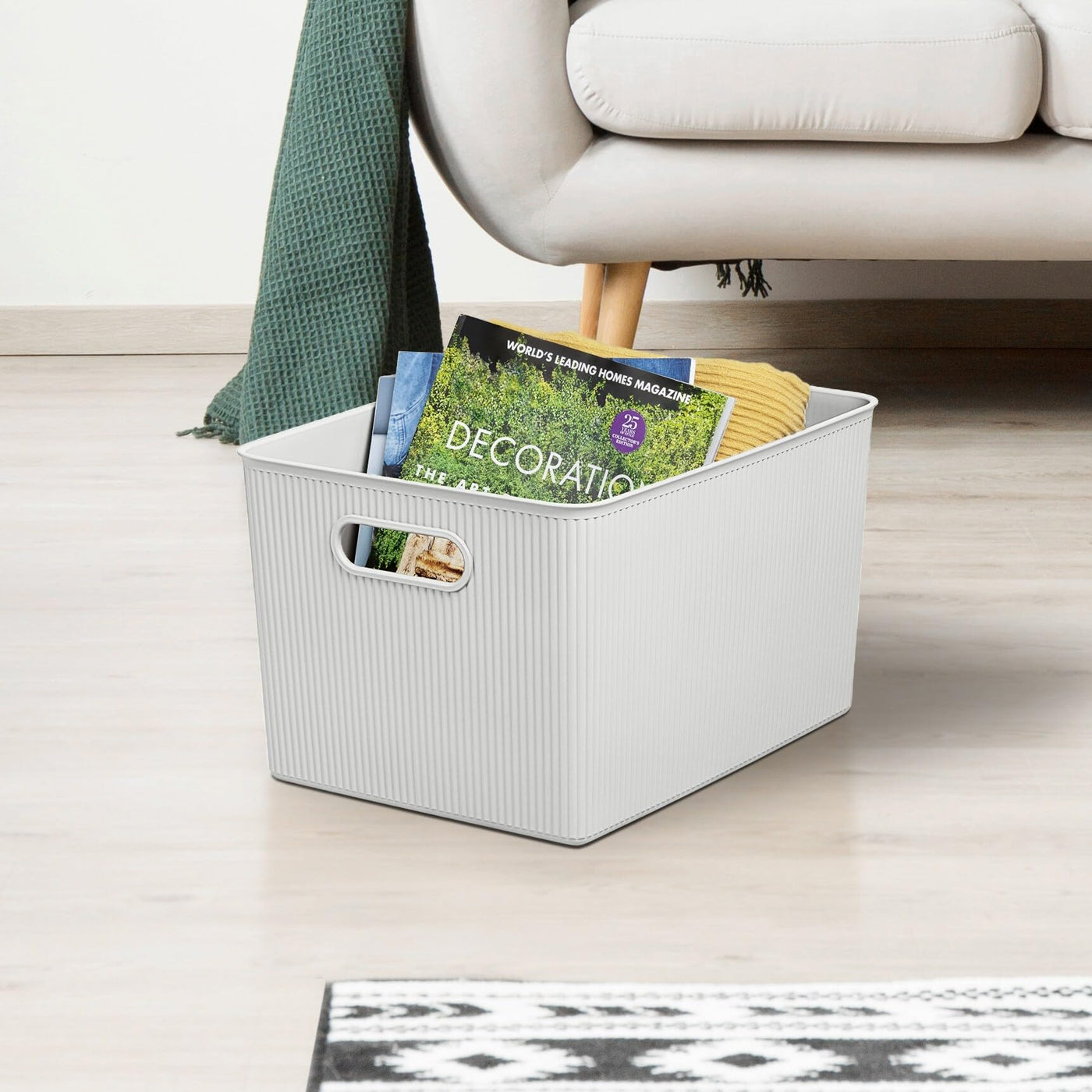 Superio Ribbed Collection - Decorative Plastic Open Home Storage Bins Organizer Baskets, X-Large Brown (1 Pack) Container Boxes