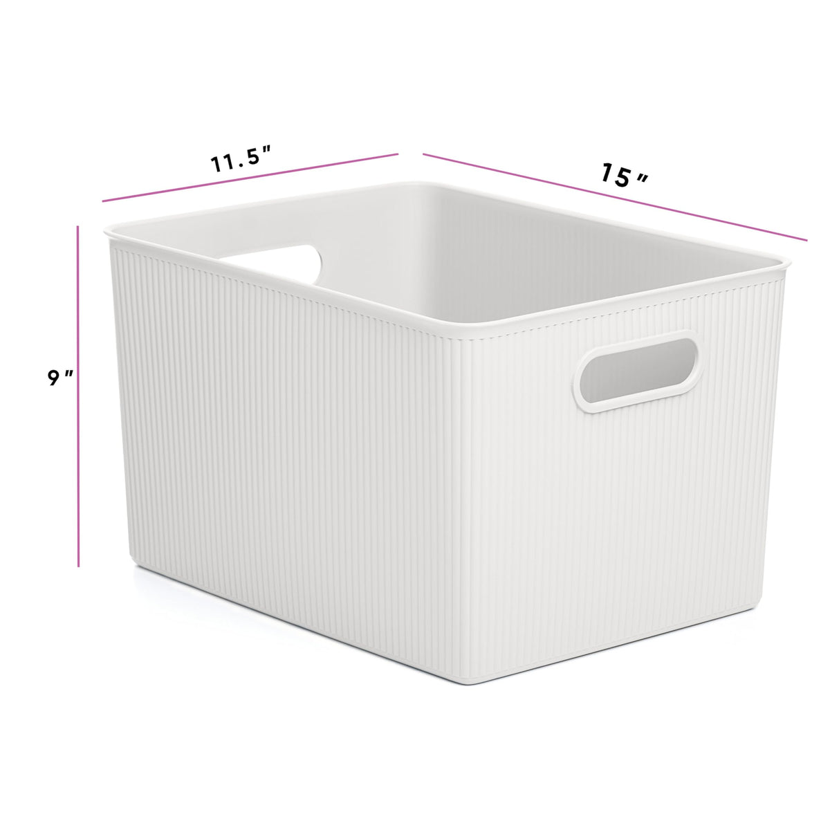 Q: What are the dimensions of the Superio Ribbed Collection storage bin?A: The Superio Ribbed Collection storage bin measures 15.0 inches in length and 11.5 inches in width, making it an ideal size for various storage needs.