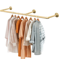 Q: What are the dimensions of the Varsoul Wall Industrial Pipe Clothes Rack?A: The item size is Gold 72”x1 pcs (3Base), with dimensions of 18.11 inches in length and 8.19 inches in width.