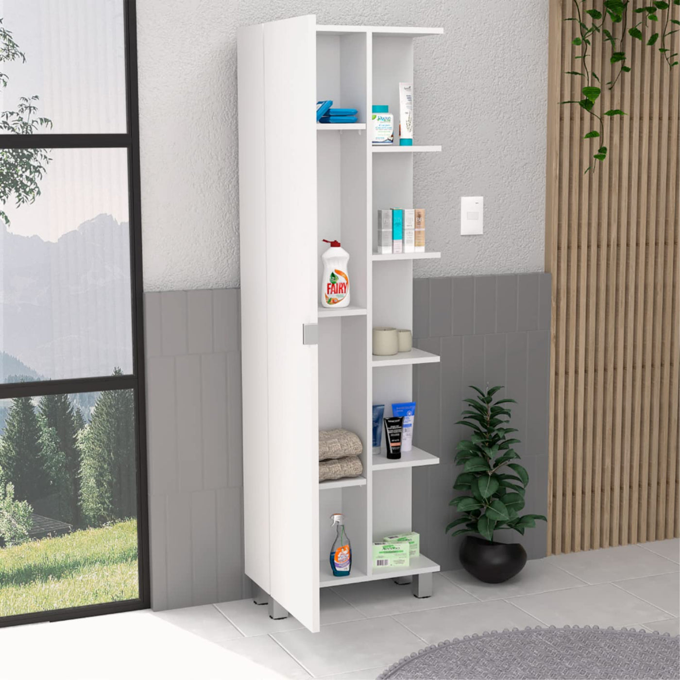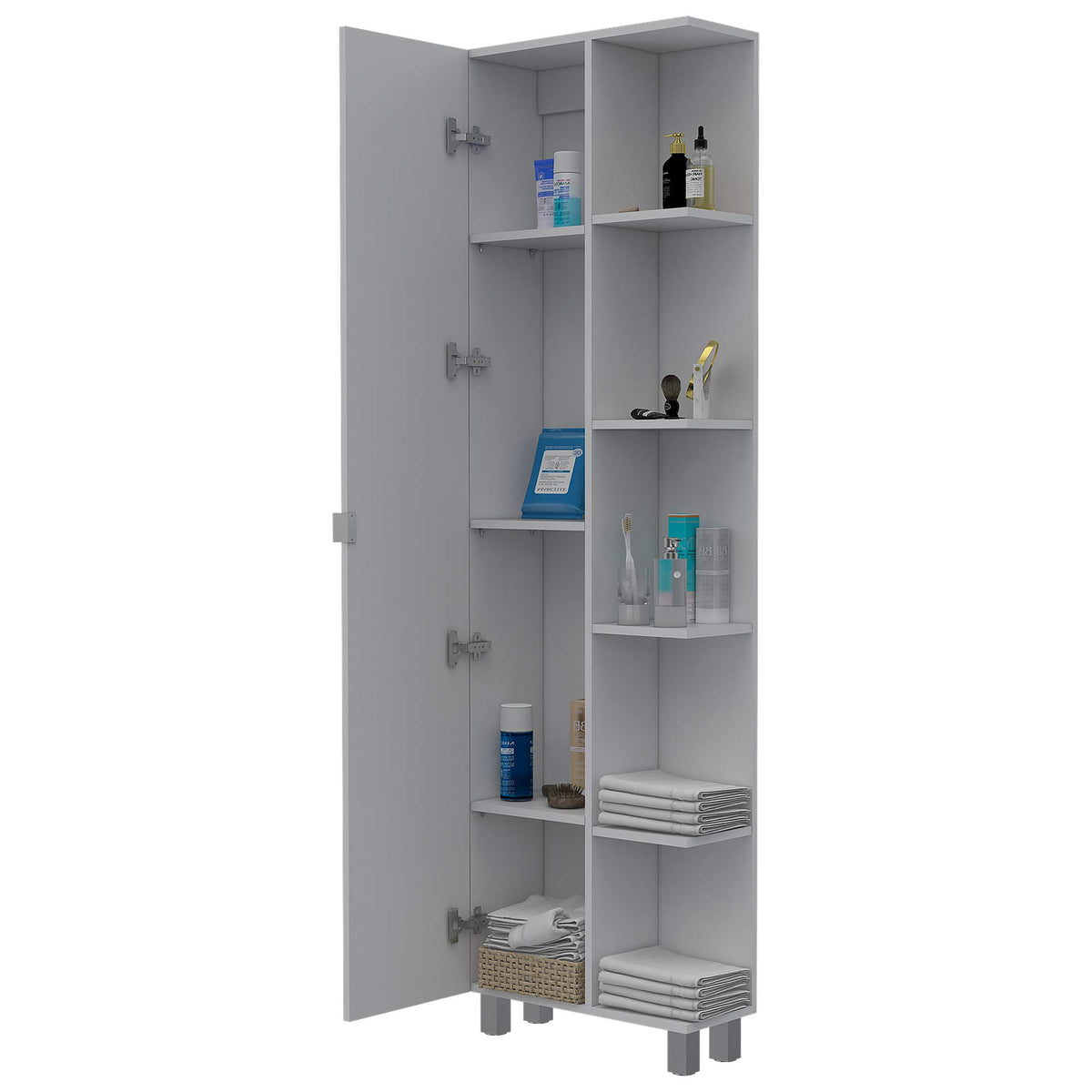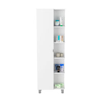 Venus Linen Single Door Cabinet with 5 Open Shelves and 4 Inner Shelves, White
