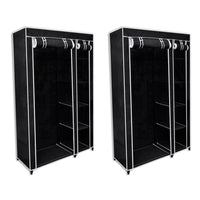 Dieser Stoff-Kleiderschrank kann im Keller, Schlafzimmer, Dachboden, und sogar beim Campen, etc. verwendet werden. Ihre Kleider werden immer sehr ordentlich aufbewahrt werden. Der Stoffschrank ist faltbar, so dass er platzsparend gelagert werden kann. Die aufrollbare Tür ist mit Klettverschlüssen versehen. Diese schützt Ihre Kleidung vor Staub und Schmutz. Dank der Reißverschlüssen ist der Faltschrank leicht zu öffnen und zu schließen. Er ist aus Fleece und Stahlrohren gefertigt und ist sehr langlebig. Lieferung umfasst 2 Faltschränke. Die Montage ist ganz einfach.Farbe: Schwarz Abmessungen: 110 x 45 x 175 cm (B x T x H)Material: Stoff + StahlrohrLieferung umfasst 2 StückWARNUNG: Um ein Umkippen zu vermeiden, muss es mit der mitgelieferten Halterung an der Wand gesichert werden.Material: Polypropylen: 100%