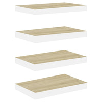 vidaXL 4 pcs Floating Wall Shelves in Oak and White, Honeycomb MDF and Metal Frame, 15.7" x 9.1" x 1.5", Stable and Durable, Modern Style, Ideal for Living Room and Office