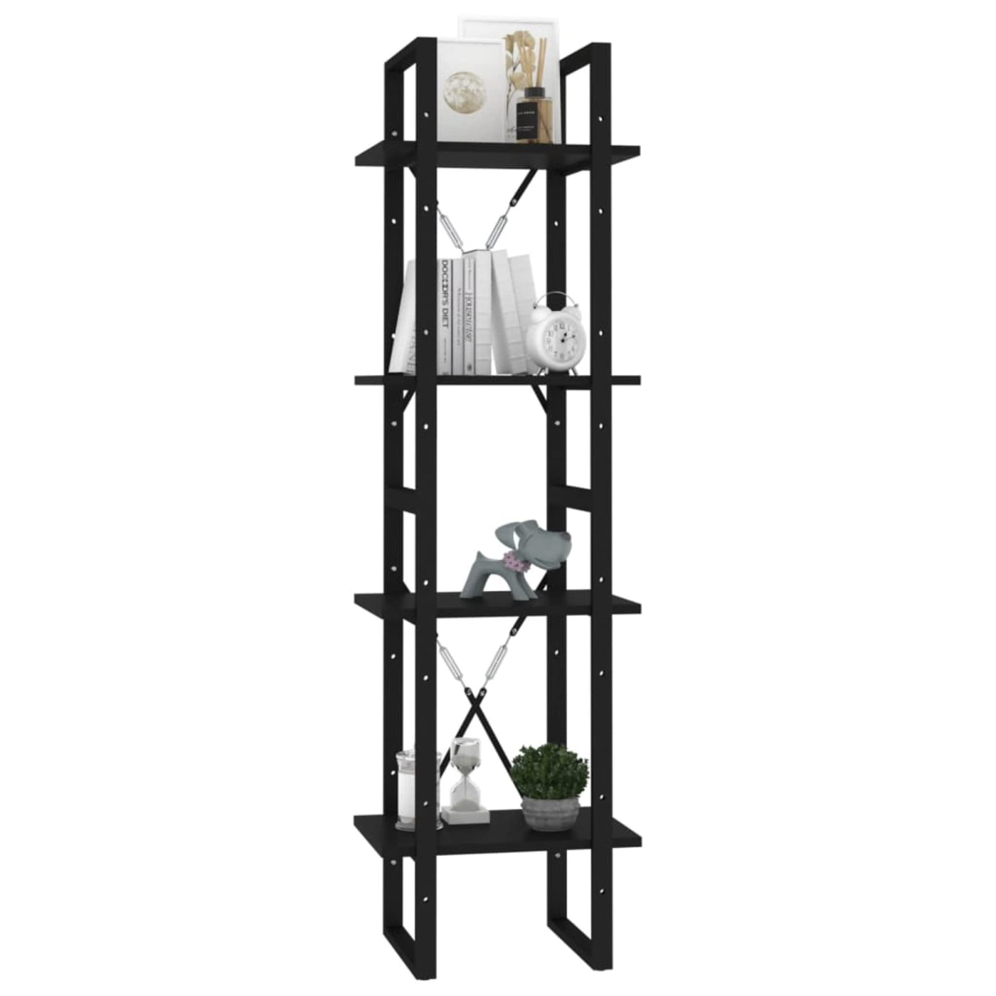 vidaXL 4-Tier Book Cabinet Black 15.7"x11.8"x55.1" Chipboard