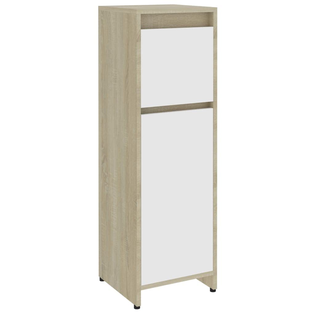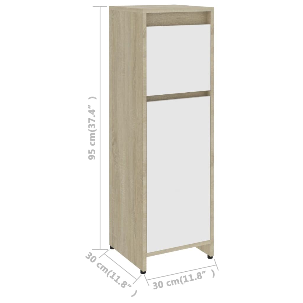 vidaXL Bathroom Cabinet White and Sonoma Oak 11.8"x11.8"x37.4" Chipboard