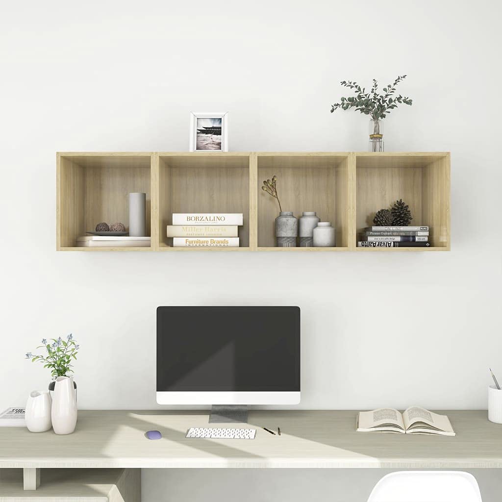 vidaXL Cubicle Shelves 4 Pcs, Floating Cube Shelves, Display Shelves, Wall Cube Shelves for Book DVD Photo Frame Planter Pot, Modern, Sonoma Oak