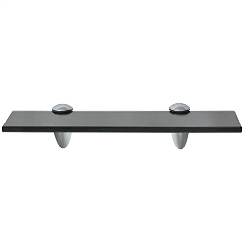 vidaXL Floating Wall Shelves, 2 pcs, Black Tempered Safety Glass, Modern Decorative Shelf, 11.8" x 7.9", Easy to Assemble, Zinc Alloy Bracket