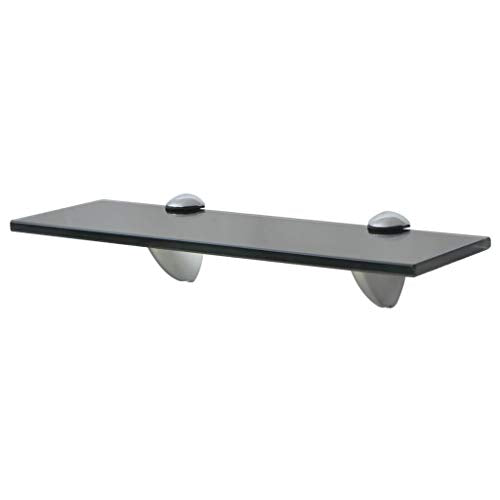 This glass shelf consists of 2 standard clip brackets made of zinc alloy and tempered safety glass with a thickness of 0.3". The shelf has a load capacity of 22 lb. The mounting hardware is included and assembly is easy.