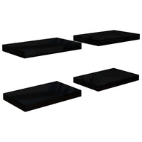 vidaXL Floating Wall Shelves, 4 pcs, High Gloss Black 15.7"x9.1"x1.5", MDF Material, Modern Black Wall Display Shelves with Invisible Mounting System