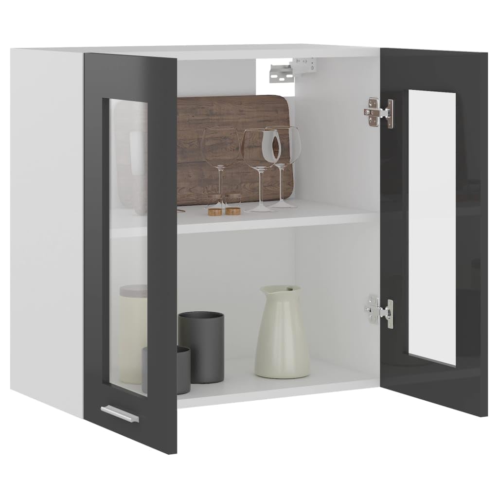 vidaXL Hanging Glass Cabinet High Gloss Gray 23.6"x12.2"x23.6" Engineered Wood