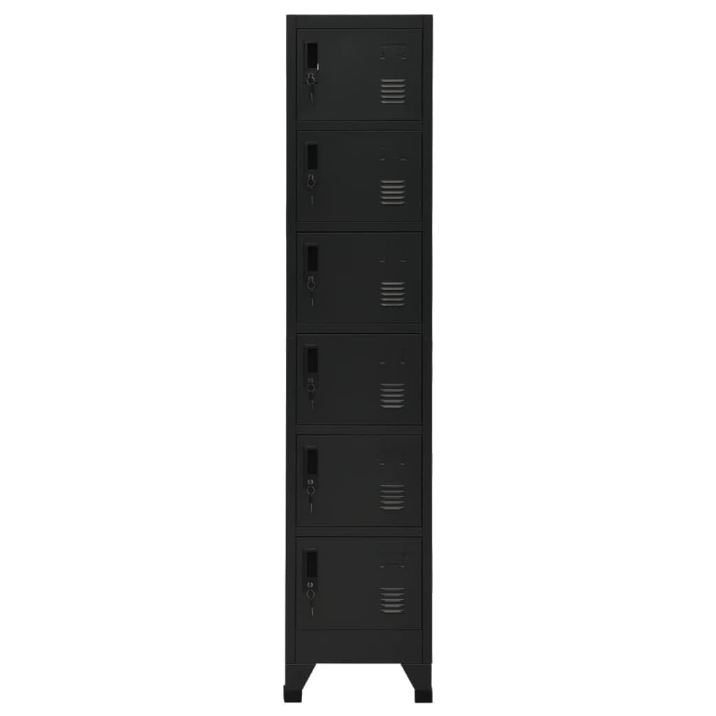 Vidaxl Modern Steel Locker Cabinet With 6 Lockable Doors And Air Vents - Black - 15" X 15.7" X 70.9"