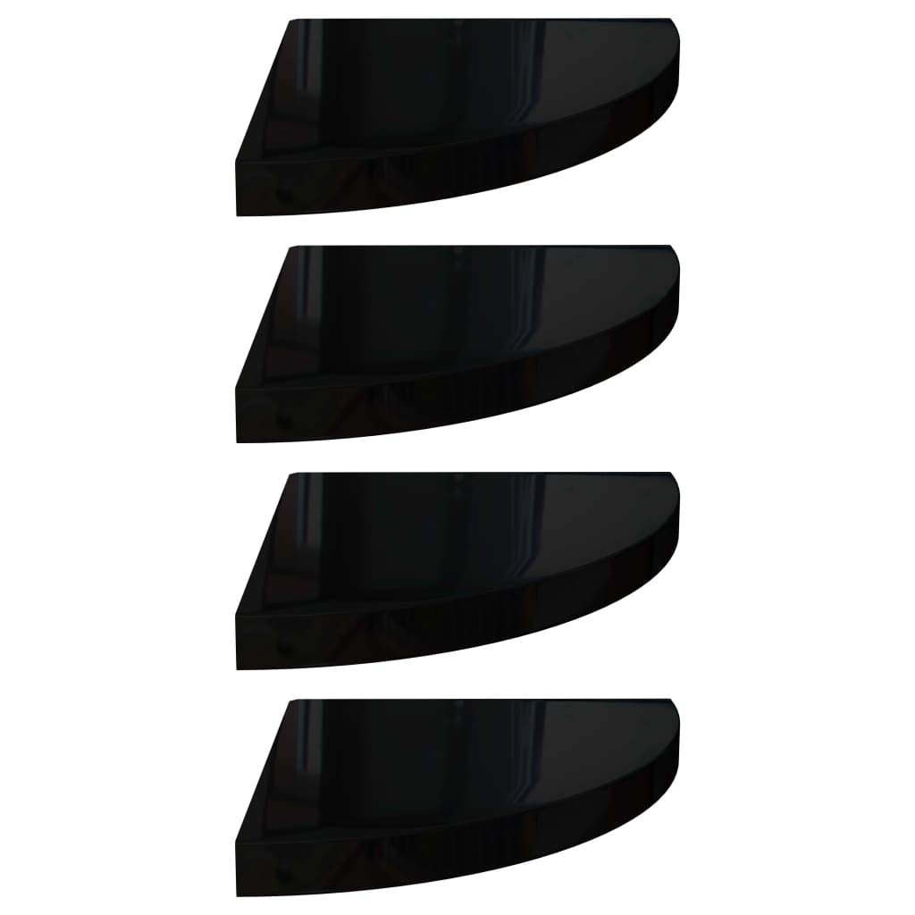 vidaXL Set of 4 Floating Corner Shelves in High Gloss Black, Honeycomb MDF and Metal Construction, Invisible Mounting System, Ideal for Home Decor Display