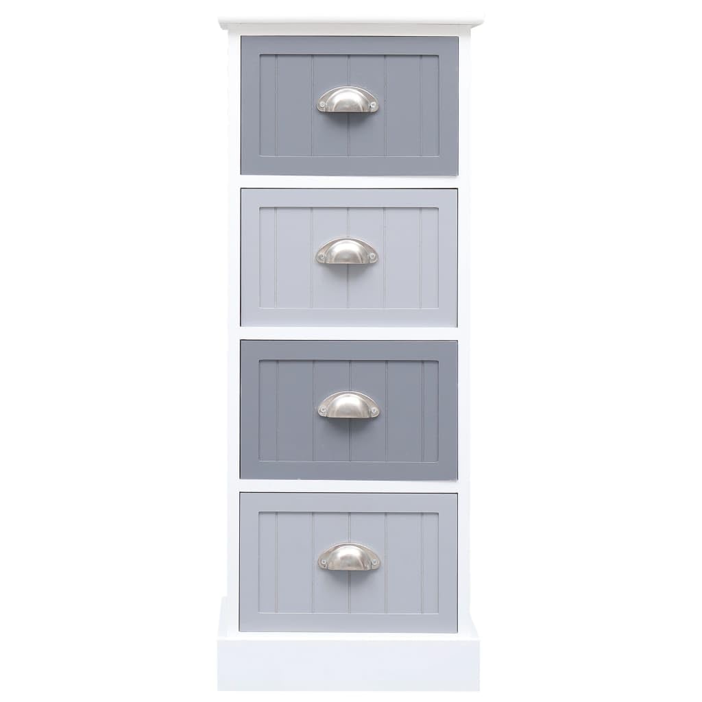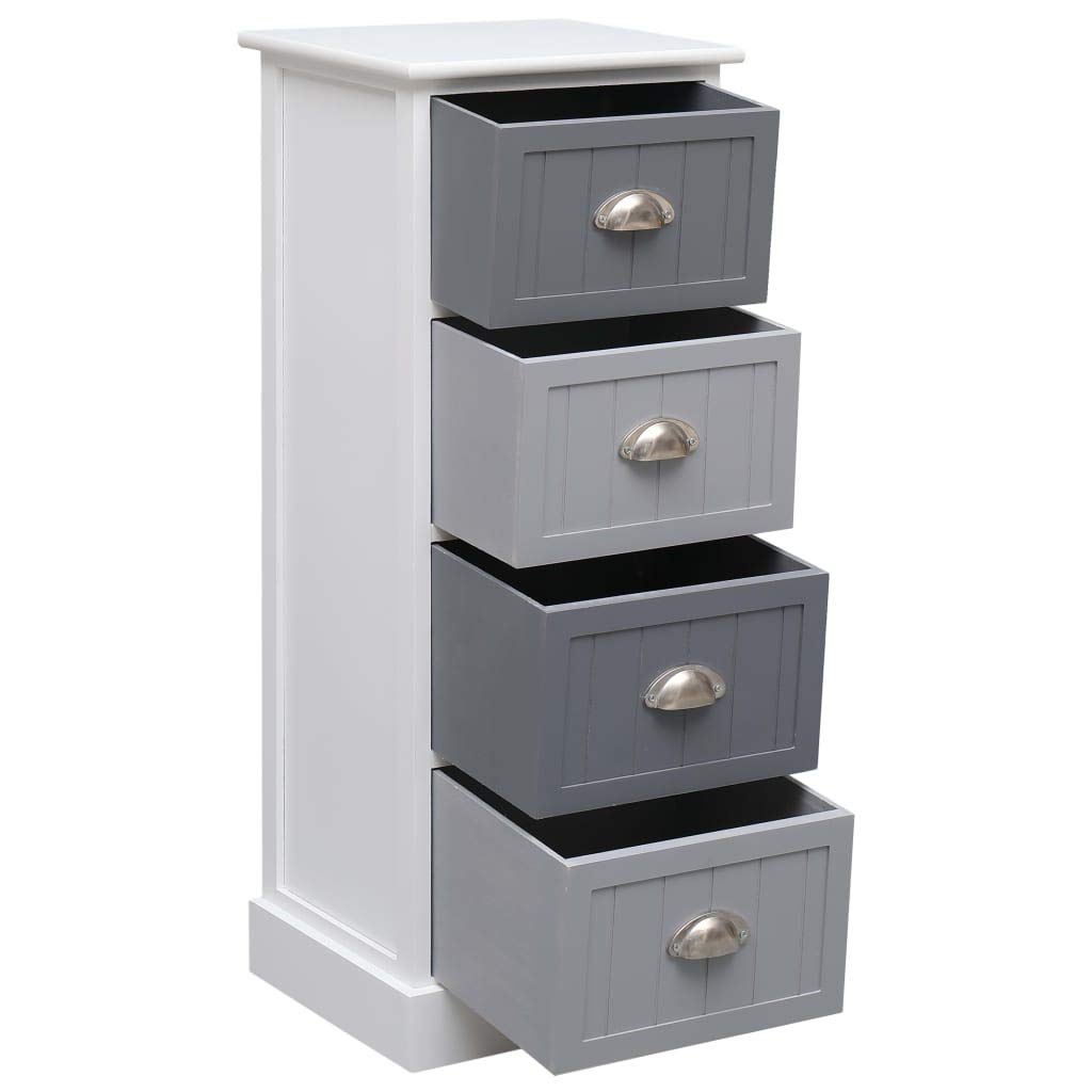 vidaXL Solid Paulownia Wood, White and Grey Side Cabinet with 4 Drawers, Farmhouse Design, Multi-Purpose Use, Bedroom Cabinet with Sturdy Top