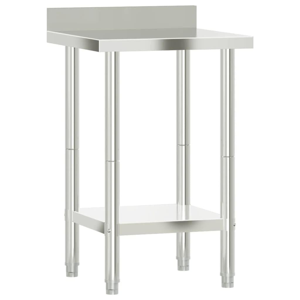 Vidaxl Stainless Steel Kitchen Work Table 21.7"X21.7"X36.6" With Backsplash - Durable Prep Station With Storage For Commercial Use, Adjustable Feet