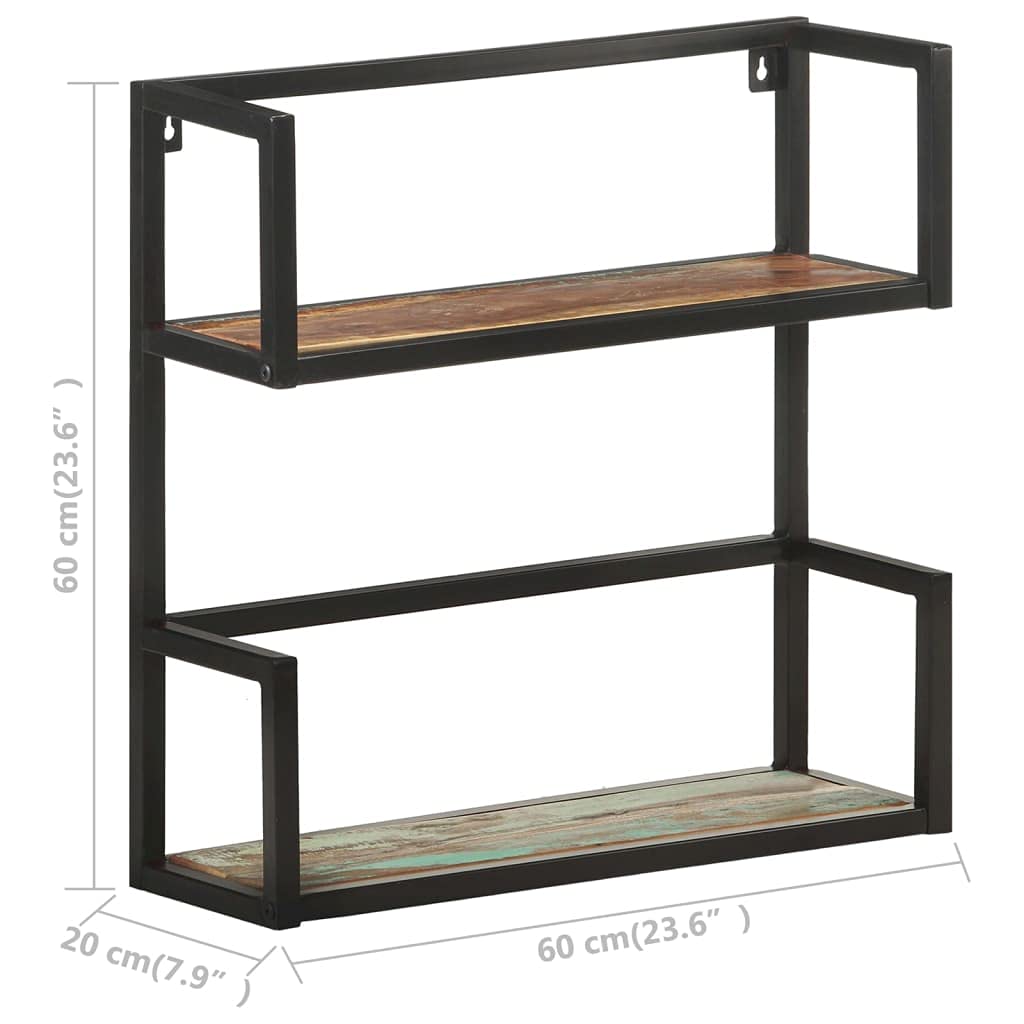 vidaXL Wall Shelf, 2-Tier Floating Shelf, Display Shelf, Wall Mounted Shelf for Book DVD Photo Frame Planter Pot, Industrial, Solid Reclaimed Wood