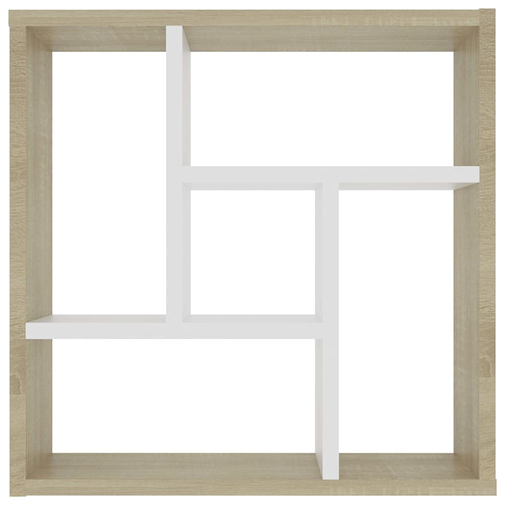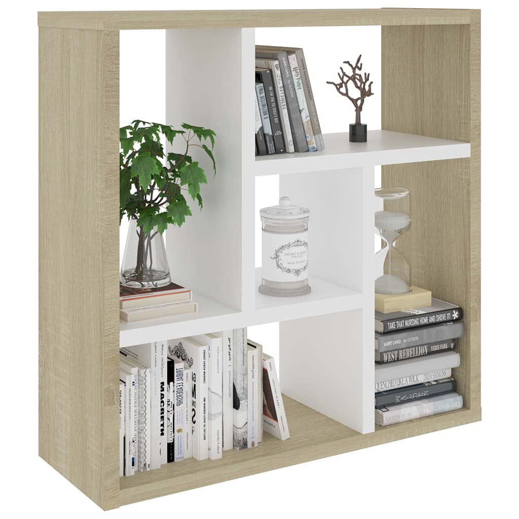 vidaXL Wall Shelf, Floating Shelf with 5 Compartments, Display Shelf, Wall Mounted Shelf for Book DVD CD Photo Frame, Modern, White and Sonoma Oak