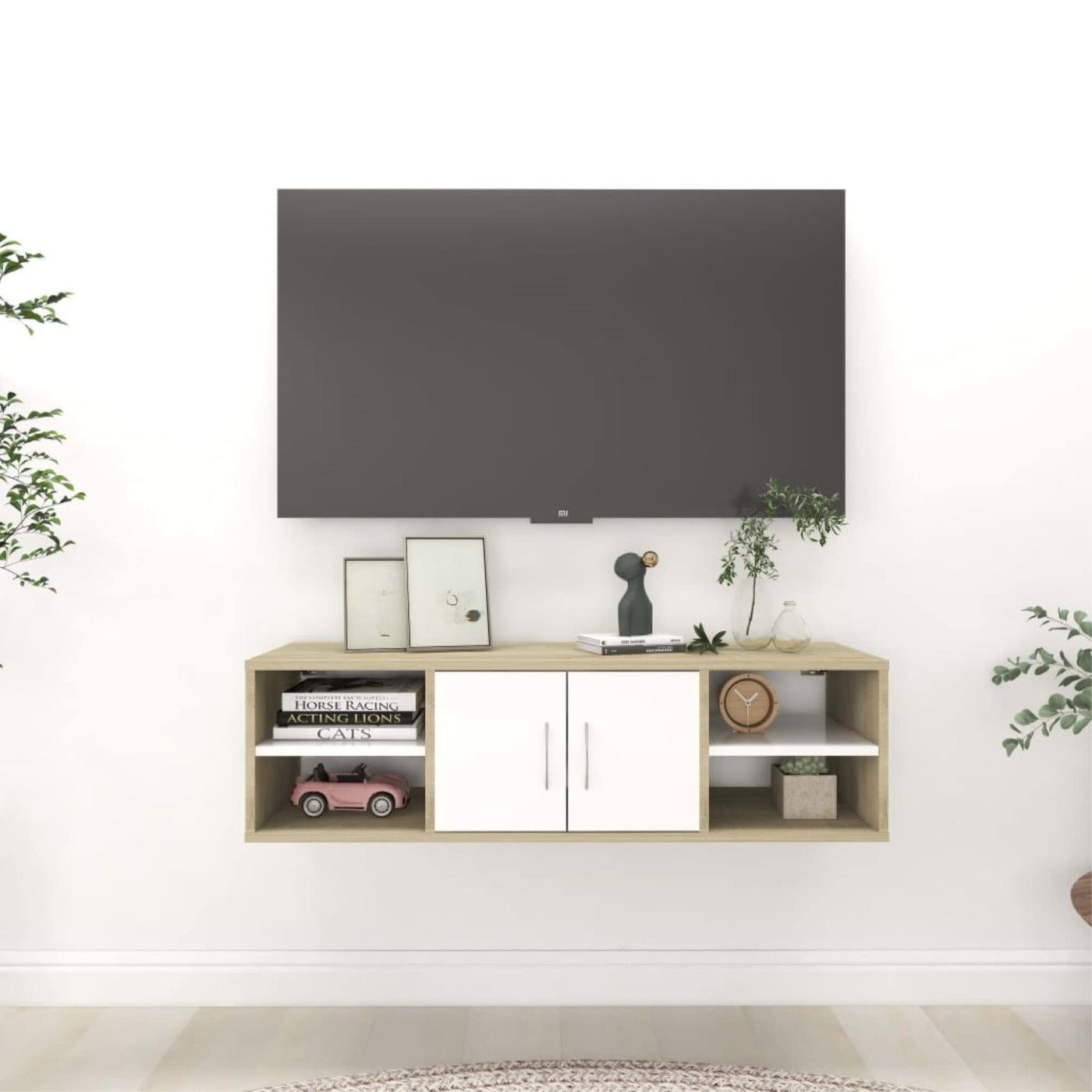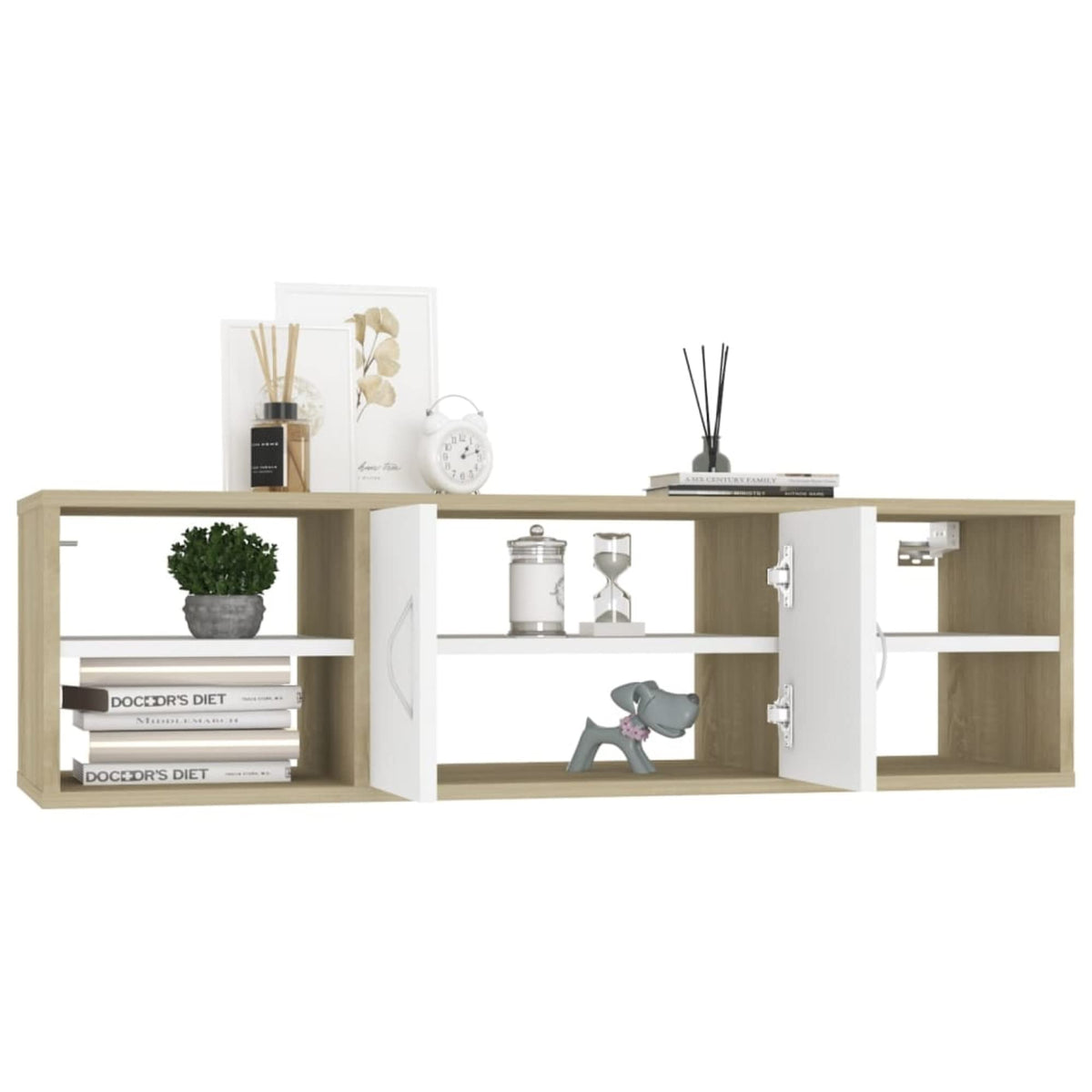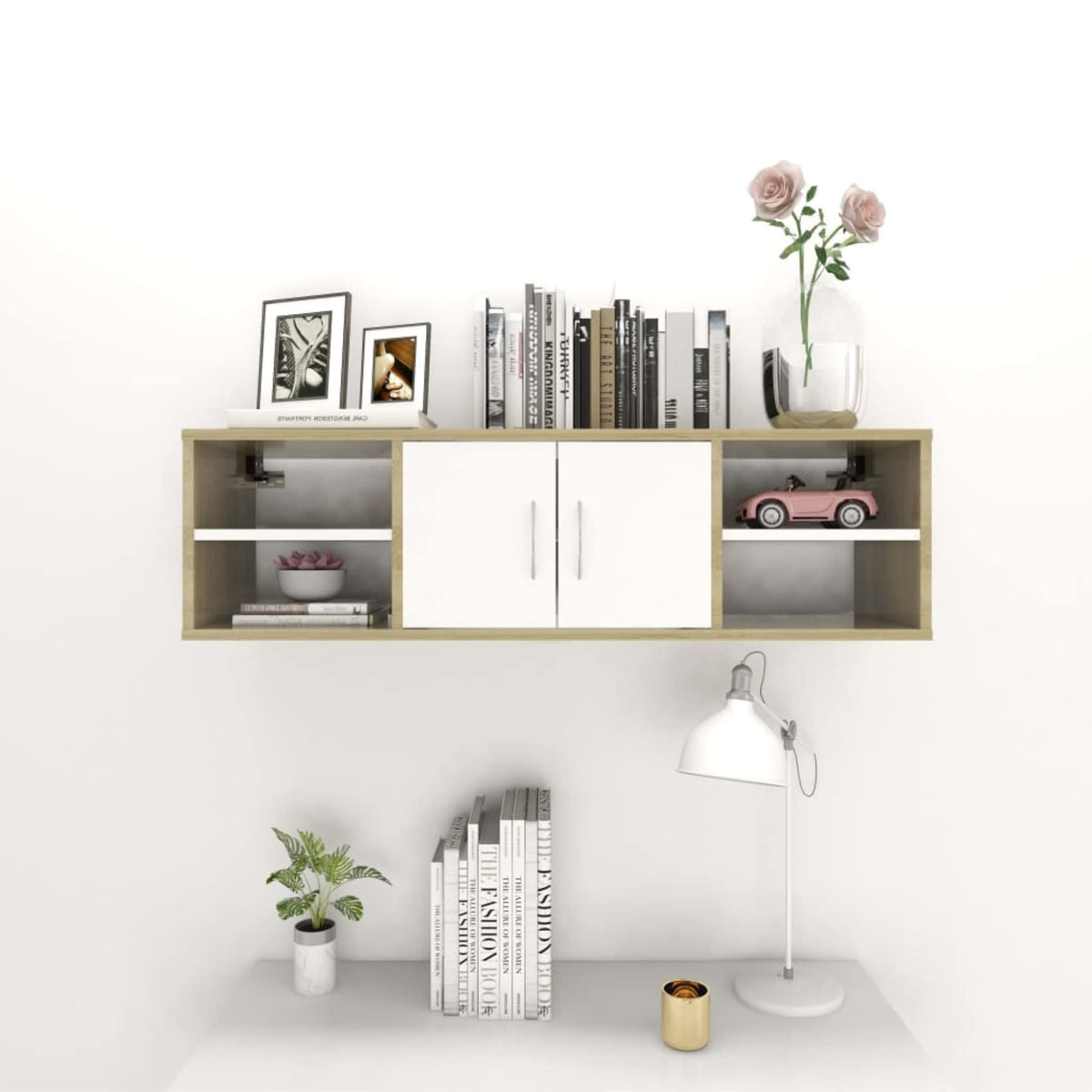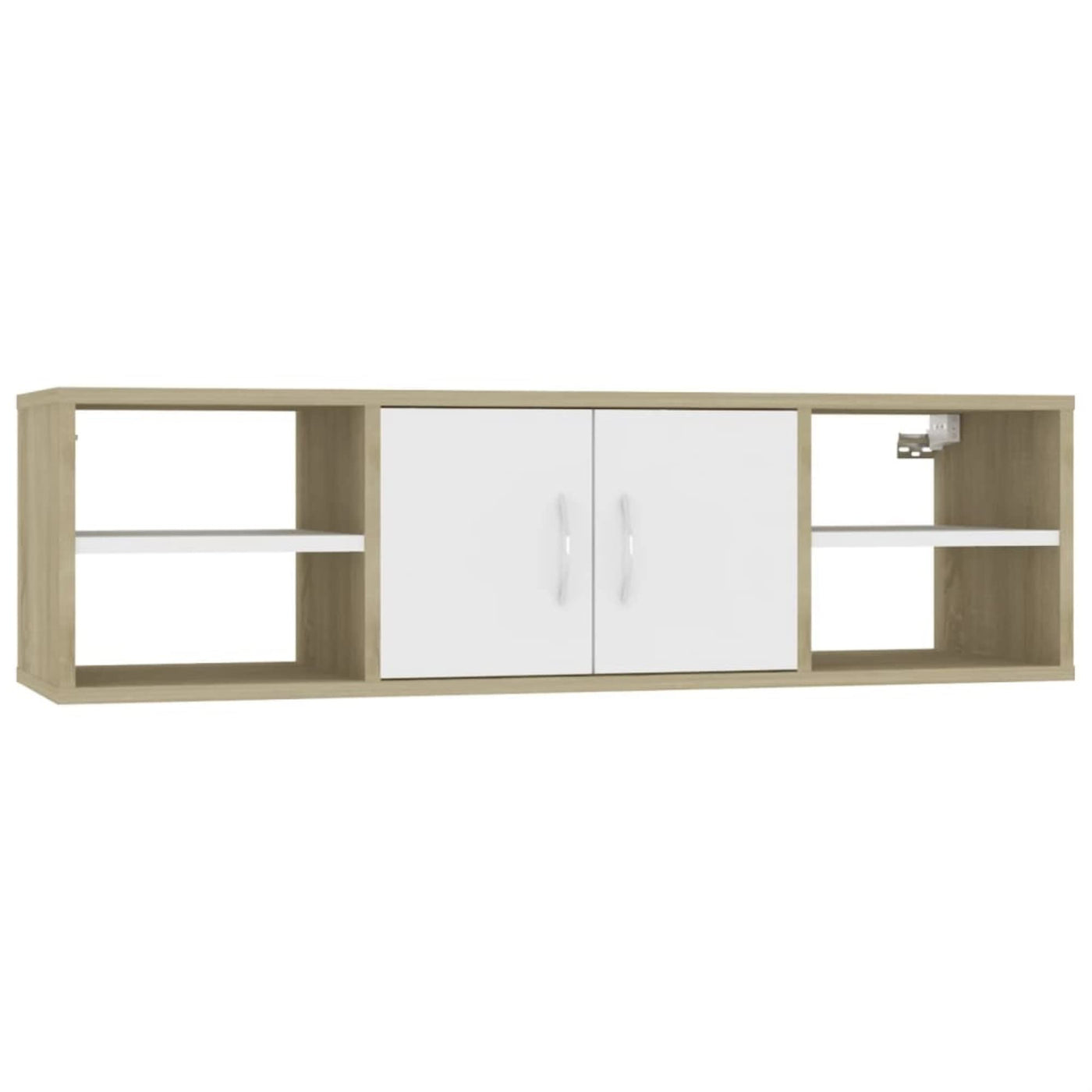 vidaXL Wall Shelf Sonoma Oak and White 40.2"x12"x11.4" Chipboard