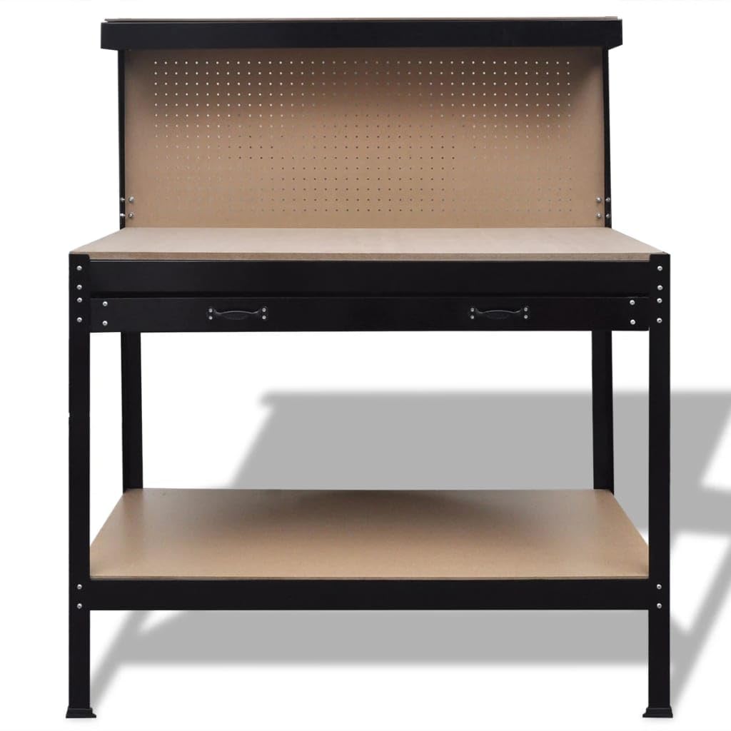 This steel workbench will be perfect for both professional and personal use.The large drawer provides ample storage space for all kinds of tools and accessories. And your tools can be clearly laid out and always within reach thanks to the practical pegboard with hooks. Bulky tools can be placed on the bottom shelf. Thanks to the large and stable work surface, you can efficiently work on even larger workpieces.Made of high-quality steel and MDF, this workbench is stable and durable.This workbench is quite easy to assemble and the mounting accessories are included. Material: Steel frame + MDF Overall size: 45.3" x 21.7" x 55" (W x D x H) Drawer size: 42.5" x 16.3" x 2.6" (W x D x H) Bottom shelf height from the ground: 10.8" Working height: 35.8" Load capacity: 331 lb With a large drawer and a pegboard Sturdy steel construction Rubber feet for extra sturdiness Delivery includes a workbench and 12 hooks California Proposition 65Warning: Cancer and Reproductive Harm – www.P65Warnings.ca.gov.