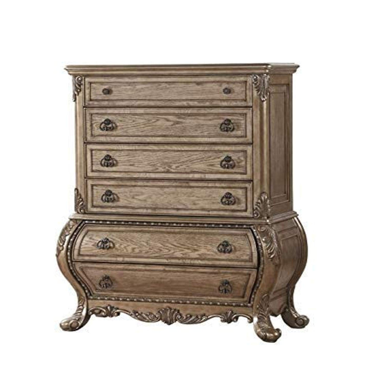 Acme Furniture 26316 Ragenardus Chest, Vintage Oak. 6 full extension drawers. Bombay Shape. Felt lined Top drawer. The country of Origin of the product is Viet Nam.
