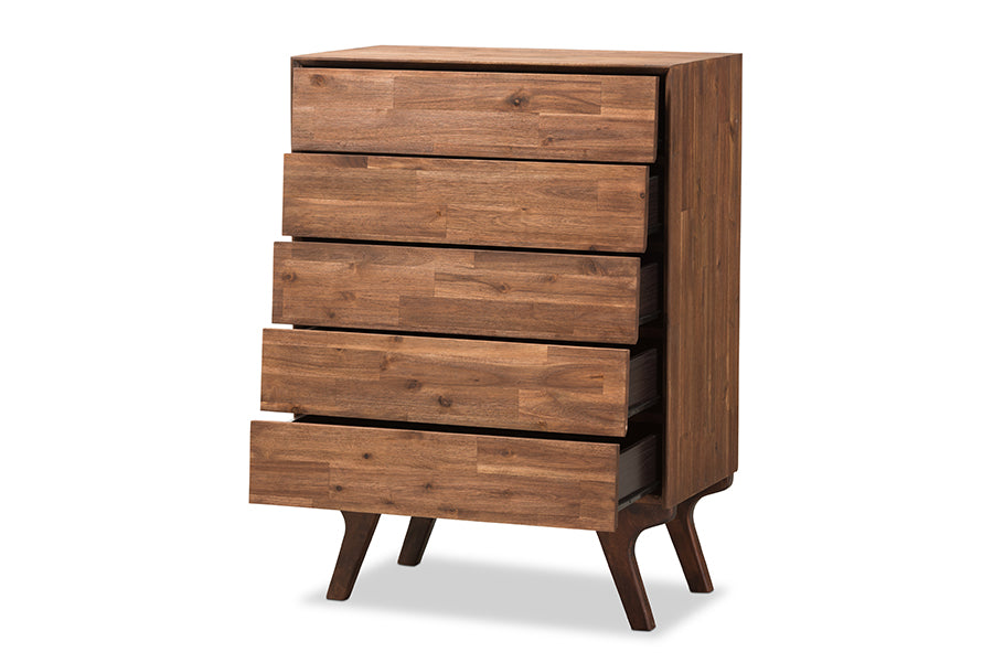 Baxton Studio Sierra Mid-Century Modern Brown Wood 5-Drawer Chest Brown//Medium Wood/Mid-Century/Acacia Wood/Rubber Wood/MDF