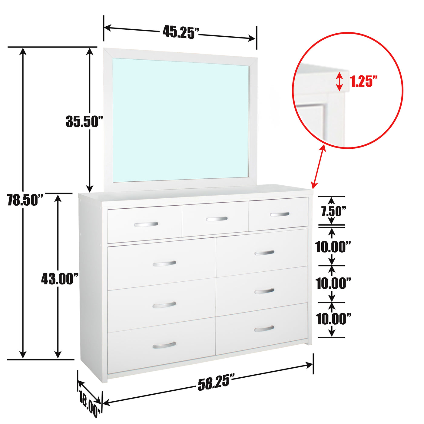 Better Home Products Majestic Super Jumbo 9-Drawer Double Dresser in White