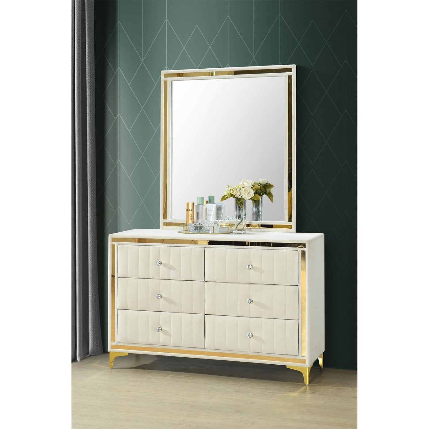 Better Home Products Velvet 6 Drawer Dresser With Gold Legs And Trim ? Fully -Assembled And Ready To Use (With Mirror, Cream)