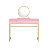 This 42inch pink mirrored two drawer dresser is a practical and good looking accent for your bedroom storage and organizational needs. This horizontal standard dresser has a convenient and wide top area for your getting ready needs and supplies. Its a high quality piece, made from high grade manufactured wood. Features. 42 Mirrored Two Drawer Dresser. The mirror itself is great for using to get ready and some even utilize it as a vanity. Dressers are a great way to keep your bedroom neat and organized. Includes 2 drawers for hidden storage and organization of your essentials. Features a mirrored surface that is reflective and adds some sparkle and brilliance to your space. Horizontal standard dresser with 2 drawers. Pink manufactured wood dresser with mirror includedSpecifications. Color Pink. Size 42. Dresser Orientation Horizontal. Dresser Type Standard Dresser. Mirrored Yes. Number of Drawers 2. Drawer Glide Material Metal. Mirror Included Yes. Manufactured Wood Type MDF. Material Breakdown Particle Board, MDF, Metal. Commercial Use Yes. Vanity Desk 42L x 20W x 31. Mirror 19L x 20H. Room Living Room, Bedroom. Material Manufactured Wood. Finish Pink Gold Finish. Country of origin Taiwan. Dimension 31 H x 42 W x 20 D. Weight 65 lbs