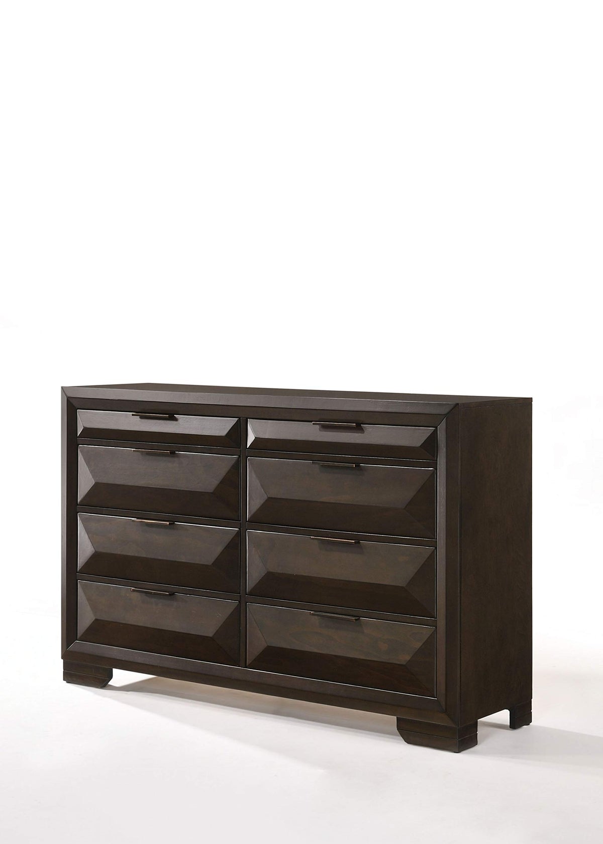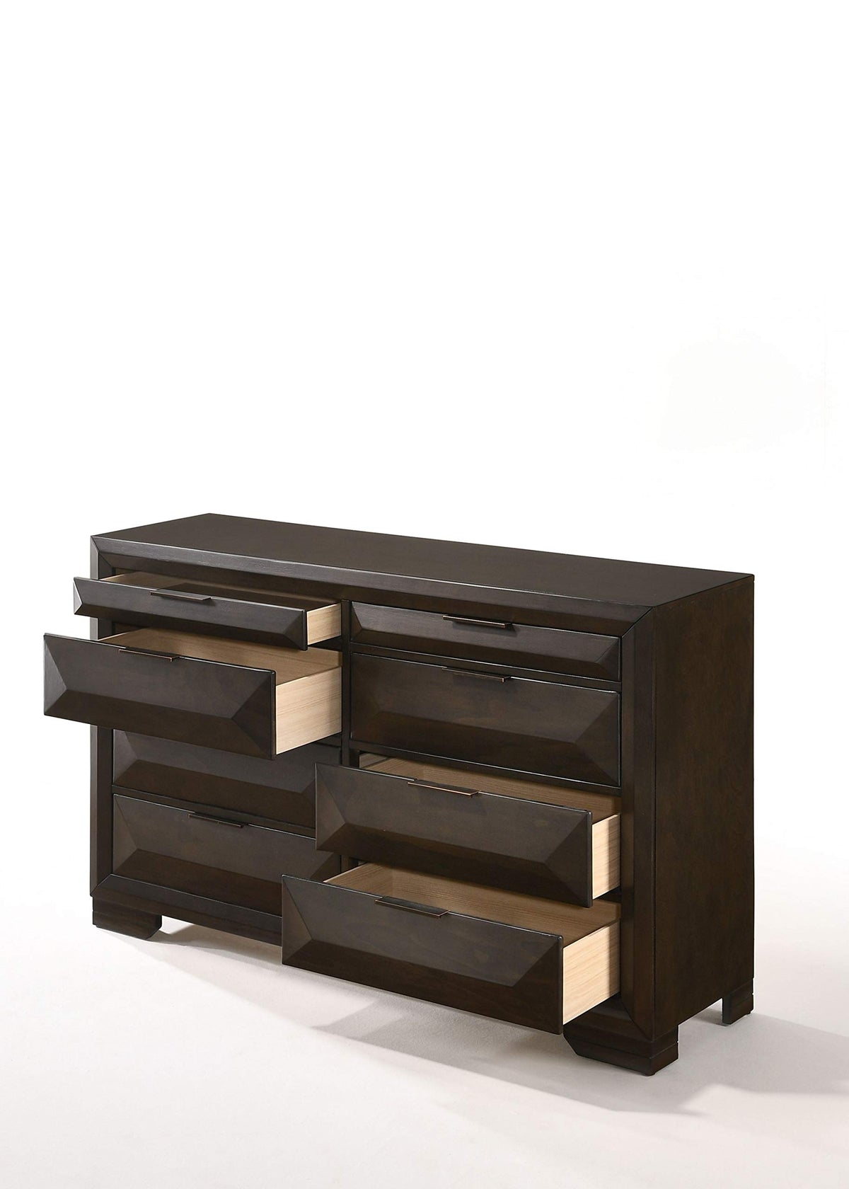 The Clean Lines And Transitional Look Of The Dresser Make It An Ideal Addition To Any Bedroom. This Contemporary Dresser Features Shaped Drawer Fronts In A Rich Espresso Finish With Bracket Feet And Dark Toned Hardware. The Eight Multi-Sized Storage Drawers Allow For Maximum Storage Space For All Bedroom Items. Add Modern Elegance And Style To Any Bedroom With This Unique Dresser.**