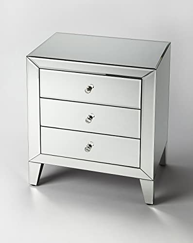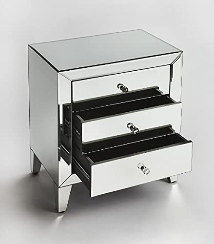 Functional without forgetting fashion, this glamorous chest is perfect for adding storage to smaller spaces. Classy and elegant, you can store clothes, blankets, scarves, books and magazines in it. You can even use the smooth surface on top to display display pieces. Carfted with a high level of detail, this rectangular shaped chest has a silver mirror finish, acrylic knob pulls and smooth metal glides. Small in scale, this chest will add beauty to any room in the house.