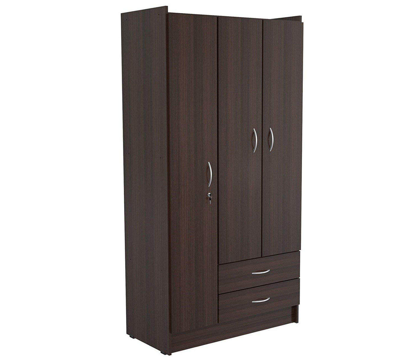 Eliminate the need for a sideboard and wardrobe by using this basic wardrobe. It has a beautiful design, making it a fantastic addition to your rooms. This cabinet is superbly made of solid composite wood laminated on all sides in durable double-sided melamine, which is stain, heat and scratch resistant. It is an exquisitely made piece, which has two doors with chrome metal handles, four shelves and two drawers. Additionally, it stands on four plastic legs and has a hanger for additional storage. Perfect for keeping your place clean and tidy. It is 71.2 inches tall, 36.6 inches wide, 17.5 inches deep, and weighs 139.7 pounds. This cabinet is a wonderful addition to any setting, and will make any room look better simply by being there.