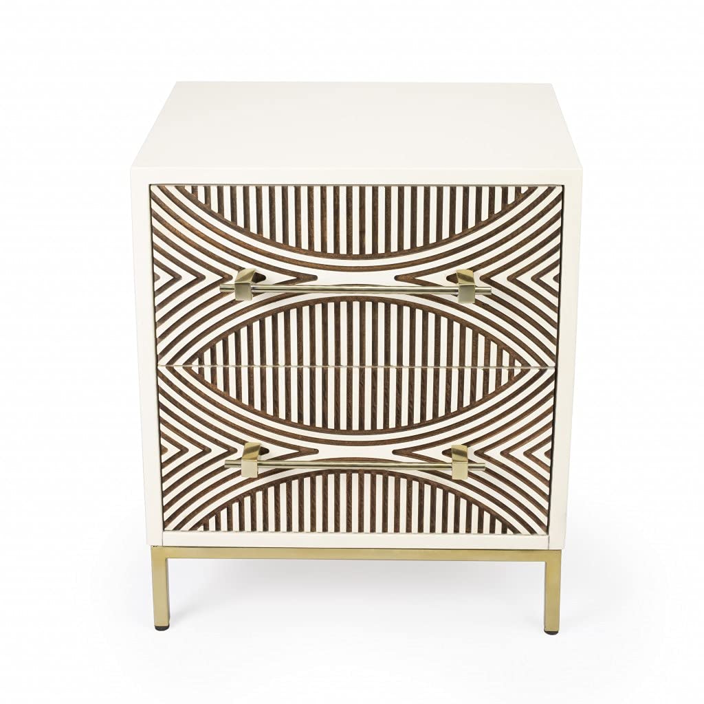 Perfect for extra storage space, use in your living room, family room or bedroom. This chest is crafted from Mango wood, it showcases a clean-lined design, whilea carved modern lines design adorns each drawer front, offeringer a layer visual texture in your space. Two drawers offer plenty of space for storage, while its elegant gold tone handles and legs create an eye-catching accent.