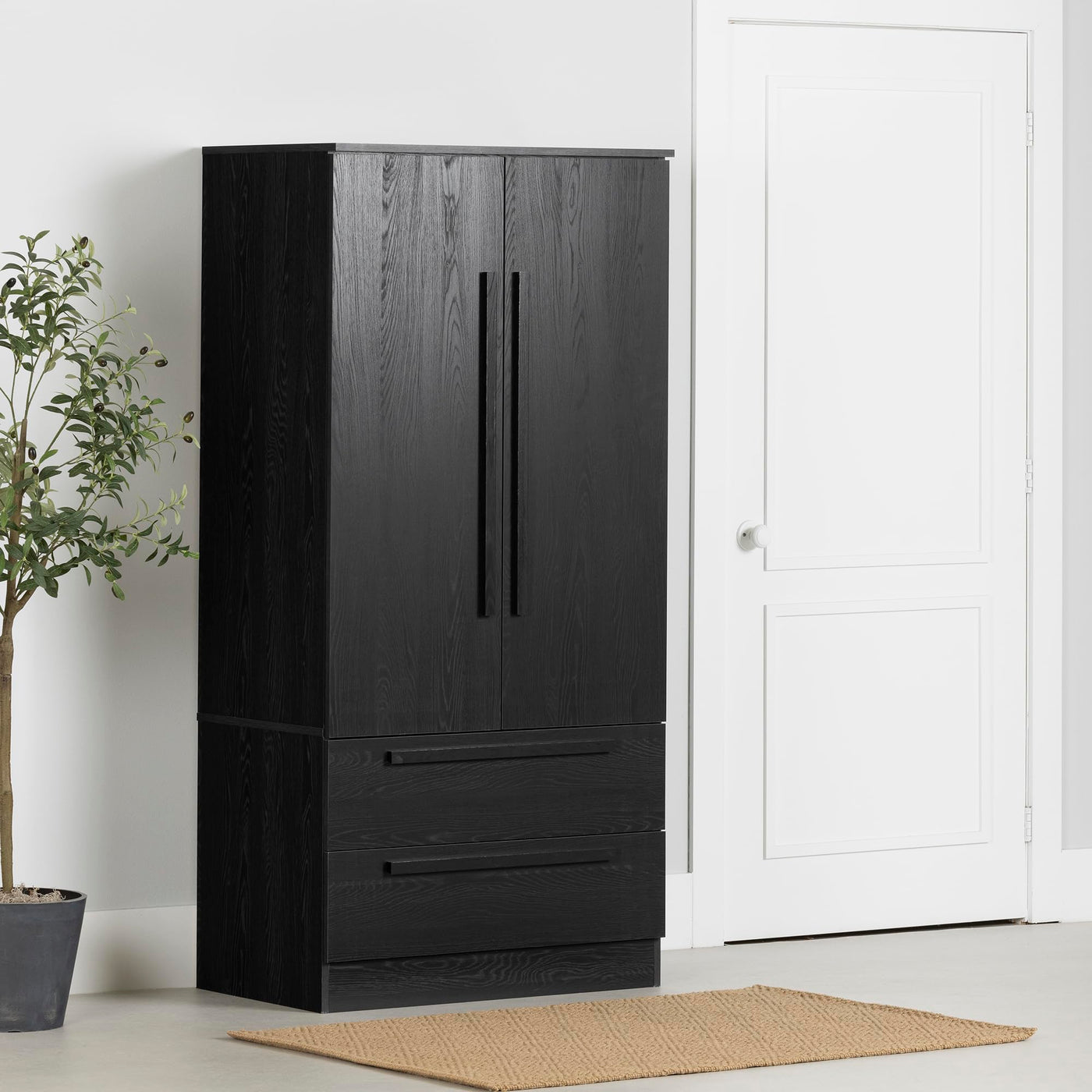 South Shore Furniture Haven 2-Door Armoire with Drawers, Black Oak