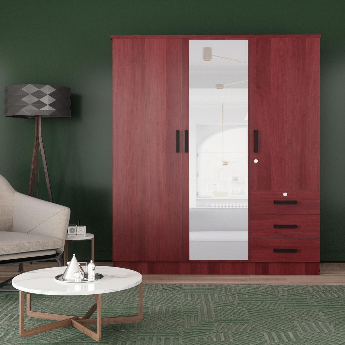 Violet Wardrobe Mirrored Door Closet 3 Doors and 3 Drawers (Mahogany)