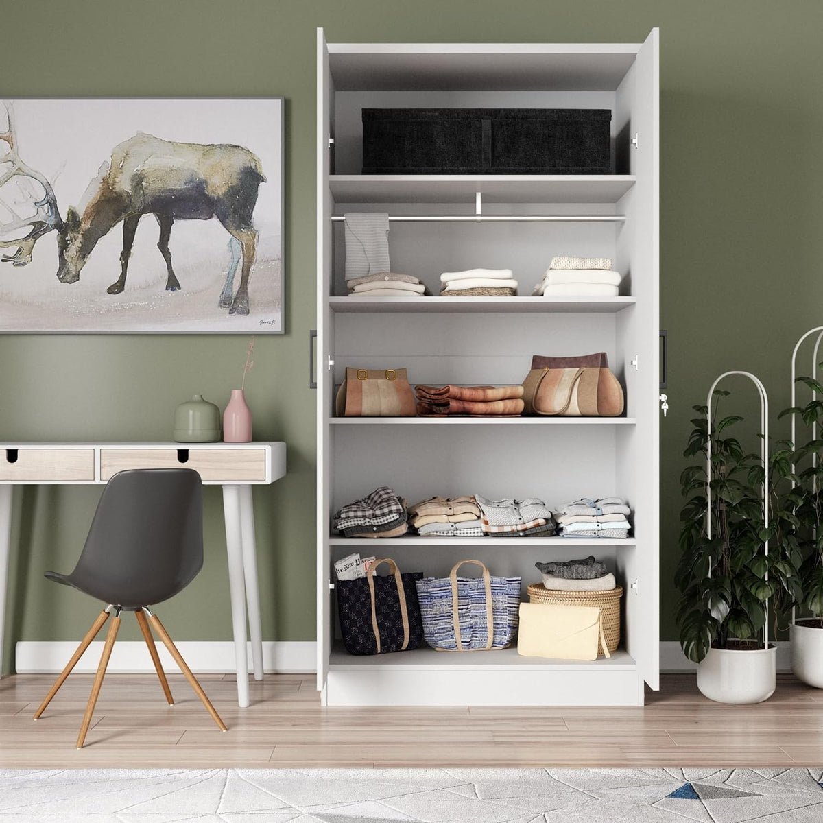 Enhance your bedroom with this stylish and functional 2-Door Armoire featuring a sleek mirrored front on one of the doors. Designed for both modern and traditional spaces, this versatile wardrobe offers ample storage for clothing, accessories, and more. Inside, you’ll find spacious compartments with adjustable shelving and a sturdy hanging rod to neatly organize your items. The full-length mirror not only adds a touch of elegance but also serves as a practical addition for dressing and outfit checks.