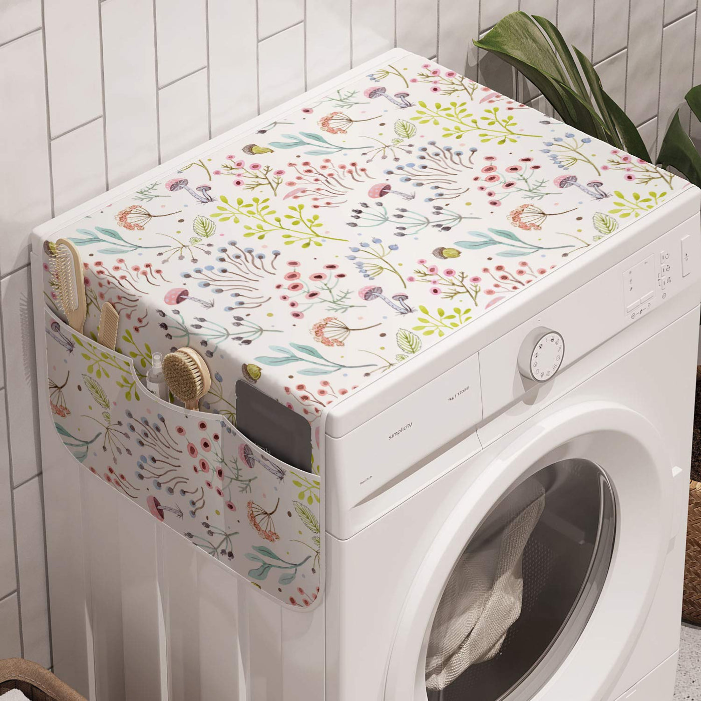 Ambesonne Colorful Washing Machine Organizer Pack Of 2, Pastel Toned Watercolor Arrangement With Mushrooms And Wildflowers Dotte