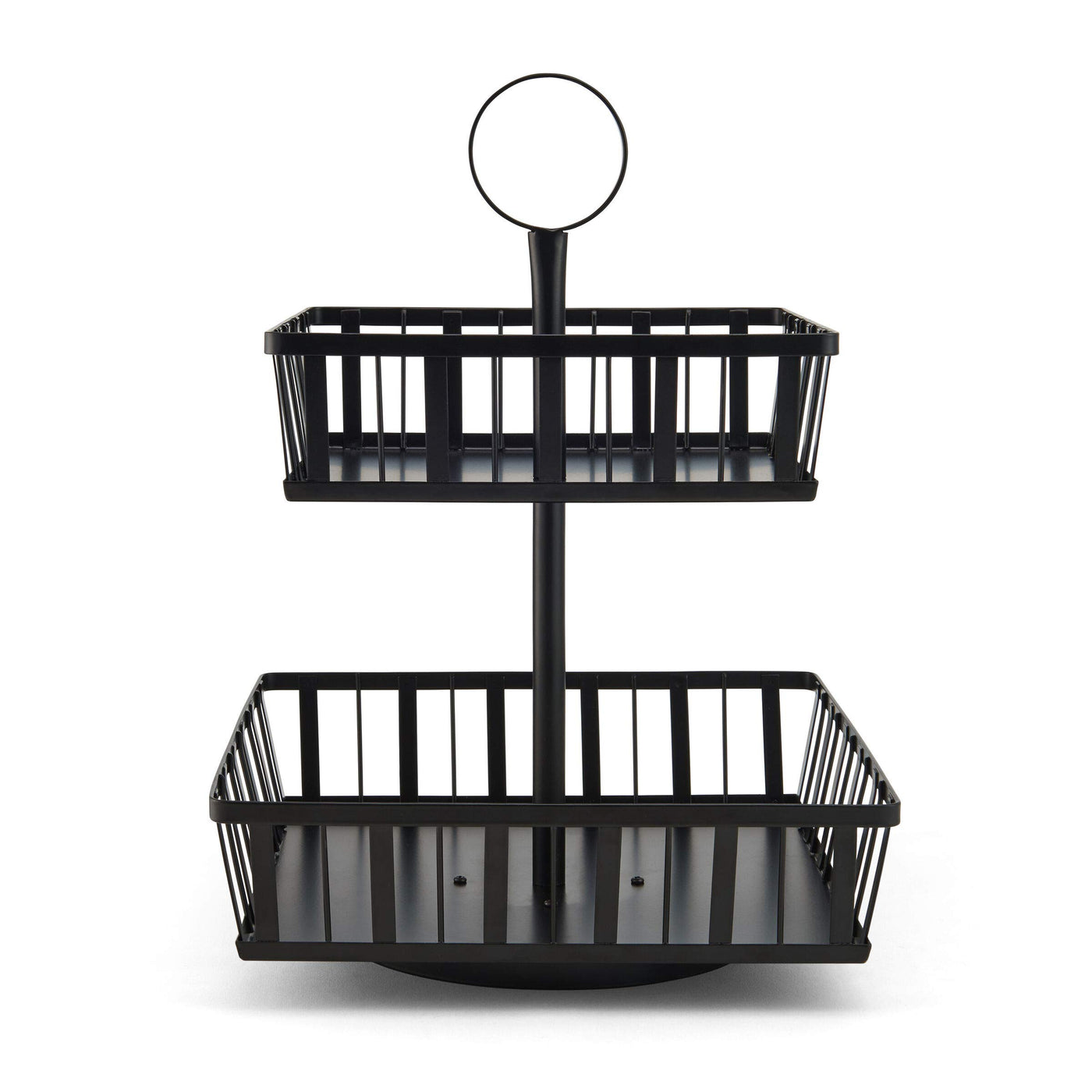 Gourmet Basics By Mikasa Rotating 2-Tier Stripe Basket, Black