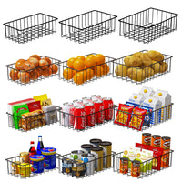 Q: What types of items can I store in these wire baskets?A: You can store a wide range of items, from pantry essentials like snacks and drinks to bathroom accessories such as towels and cosmetics, making them a versatile organizing solution.