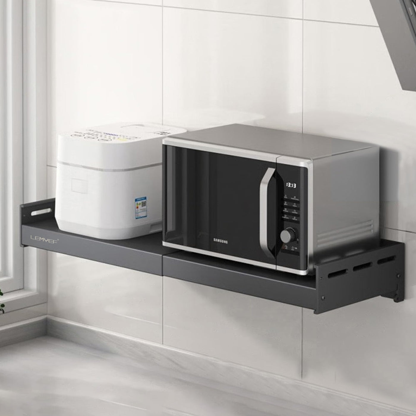 Lemyef Stainless Steel Adjustable Wall Shelf Or Household Grade Wall Mount Microwave Oven Shelf With Fixing Kit, Commercial Storage Rack, Countertop Multifunctional Storage Rack (16-25.5 Black)