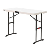 Lifetime 4-foot commercial adjustable height folding tables are constructed of high-density polyethylene & have three adjustable height settings. They will not crack, chip or peel, & are built for indoor & outdoor use. The patented steel frame design provides a sturdy foundation & is protected with a powder-coated, weather-resistant finish. Designed with an innovative one-hand adjustment mechanism, this Lifetime 4-foot adjustable height table is backed by a ten-year warranty, & is perfect for your home, office, outdoor activities & more!.
