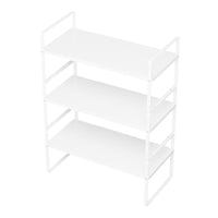 Q: How much weight can the shelf organizers hold?A: Each shelf can bear up to 60 lbs, making them sturdy enough to hold a variety of kitchen items, books, or office supplies.